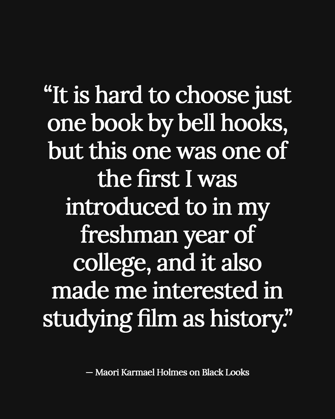 Purchase"It is hard to choose just one book by bell hooks, but this one was one of the first I was introduced to in my freshman year of college, and it also made me interested in studying film as history. I’d already been interested in both film and history and realized I could bring the two together, and also think through larger concerns about life (what I would later learn as intersectionality) was transformative."