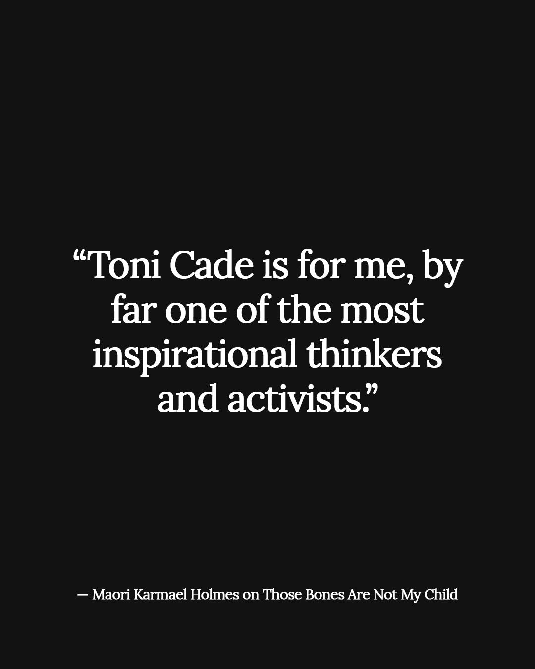 Purchase"Toni Cade is for me, by far one of the most inspirational thinkers and activists. Her books and essay collections could be my entire list, but I chose this one because of her approach to this traumatic event in novel form, which was an inspiration about how to approach historical fact through narrative--which as her editor Toni Morrision believes--and I’m paraphrasing, badly--might be the most efficient way to actually get to the truth."